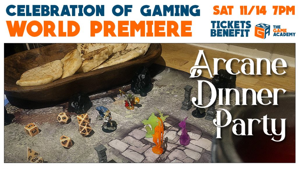 I also helped produce Arcane Dinner Party, created by Amber Hope and Michael Schatz. It’s a new Twitch livestream where hearty heroes quest for fame and fortune–on a full stomach! Our educational show uses all five senses and features unique recipes baked into each one-shot tabletop role-playing game scenario. Pre-taped interludes and active chyrons reveal the history behind the meal plus simple methods to make it yourself! Bring your appetite for adventure–and food!
